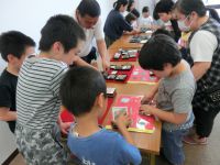 石膏が完全に固まるまで待つ時間には、本物の化石にしっかり触らせてもらいました。参加者は化石の名前を教わったり、手触りや重さをじっくり感じたりして、大満足の様子でした。