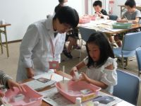 今年は、博物館の赤﨑 英里(あかさきえり)先生をお迎えして、化石のできる仕組みを学んだり、化石模型を作ったりする講座「化石レプリカを作ろう!」を実施しました。