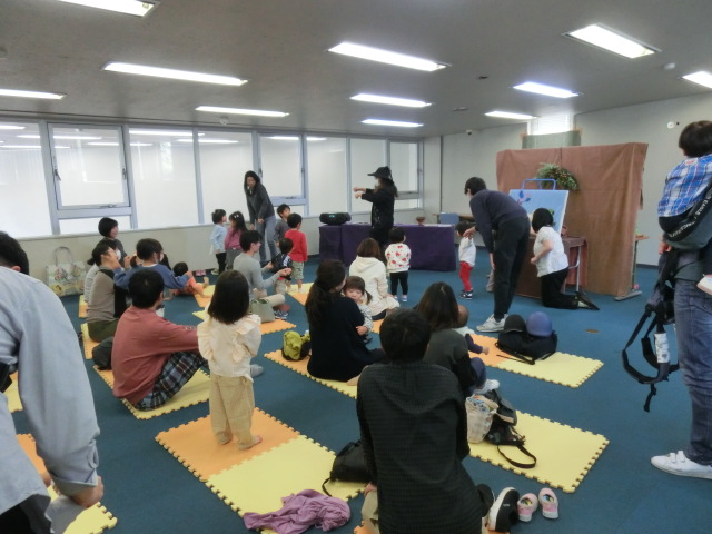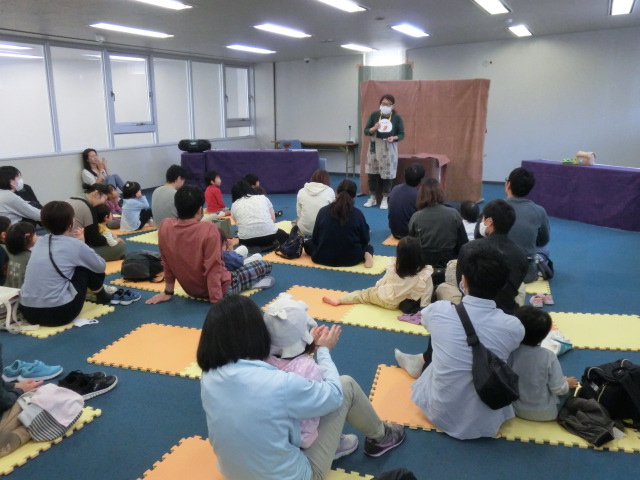 山口県こども読書支援センターでは、毎年読書週間(10/27~11/9)行事の一環として「秋のスペシャルおはなし会」を開催しています。今年は、山口市を中心に活動されている、「おはなしパペット ぐるるんぱ」さんをお迎えして、読み聞かせやパネルシアターを鑑賞するおはなし会を開催しました。