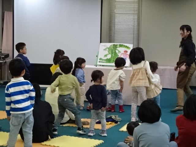 実演ならではの参加者との掛け合いや、言葉や音楽にあわせて体を動かしたりする体験型の読み聞かせに、参加された親子もたっぷりと楽しめた会になりました。