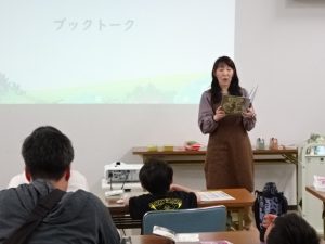 最後に、県立図書館の職員が、『ファーブル昆虫記』や昆虫に関する図鑑、絵本を紹介しました。気になった本を自由に手に取って、希望者は本を借りて帰りました。