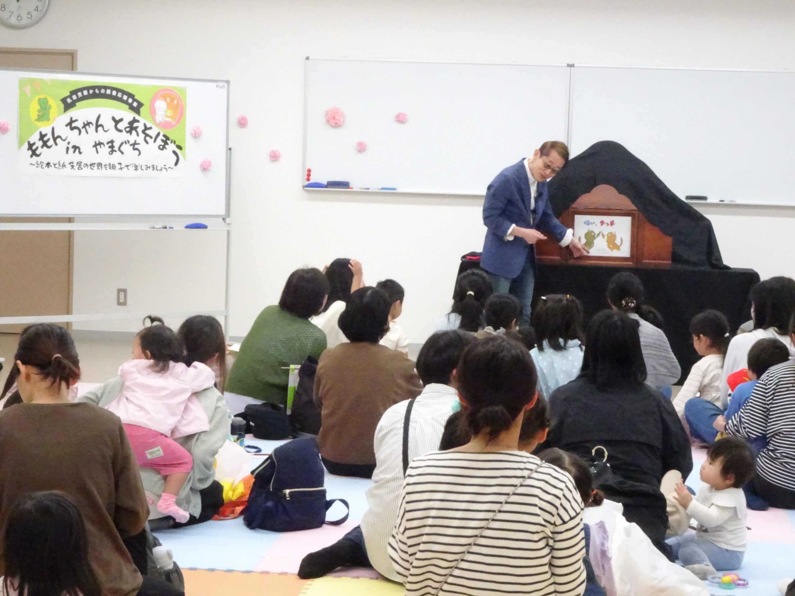 山口県こども読書支援センターでは、毎年読書週間(10/27~11/9)行事の一環として「秋のスペシャルおはなし会」を開催しています。今年も昨年度に引き続き、山口県教育庁地域連携教育推進課と共催した「乳幼児期からの読書応援事業」の親子セミナーとして「ももんちゃんとあそぼうinやまぐち」をその代替行事として実施しました。