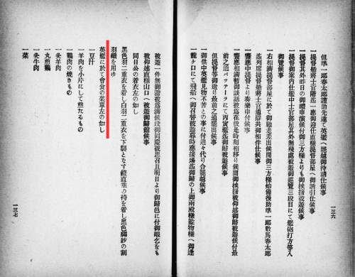 令和6年12月2日から令和7年3月31日まで、当館は臨時閉館していますので、今回の展示では、インターネット上で利用できるものを中心に、饗応の様子やメニューを記した資料などをご紹介します。