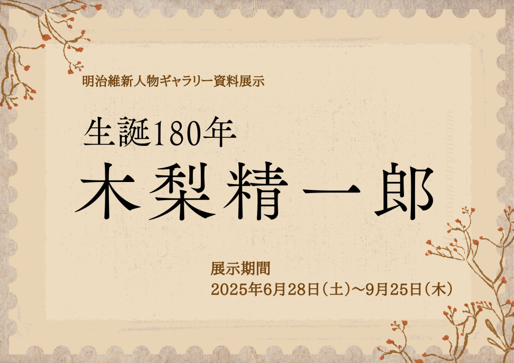 木梨精一郎の生誕180年にちなみ、関連資料を展示・紹介します。