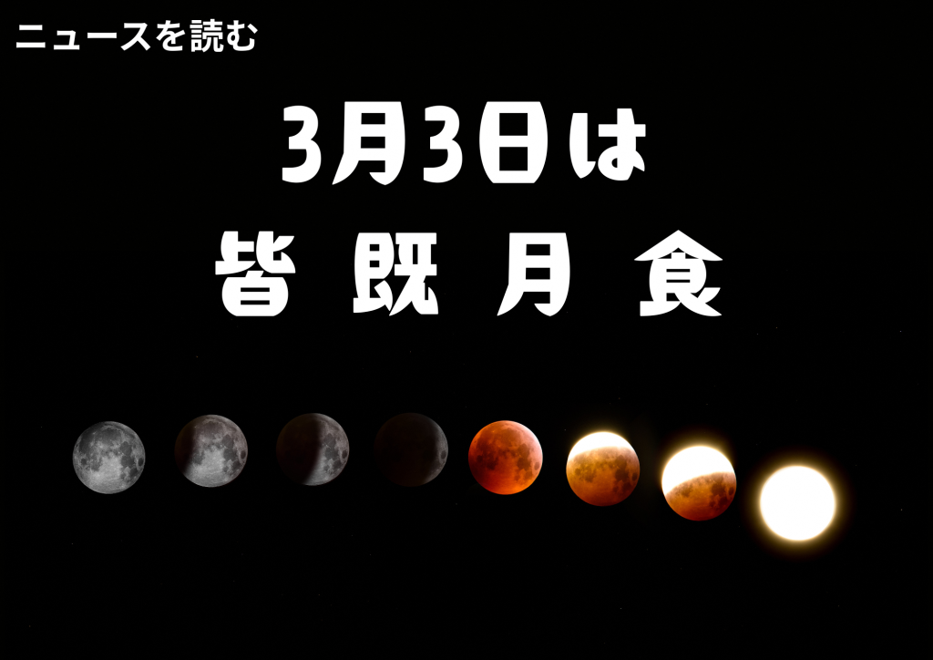 3月3日の夕方から夜にかけて、日本全国で皆既月食が観測できます。