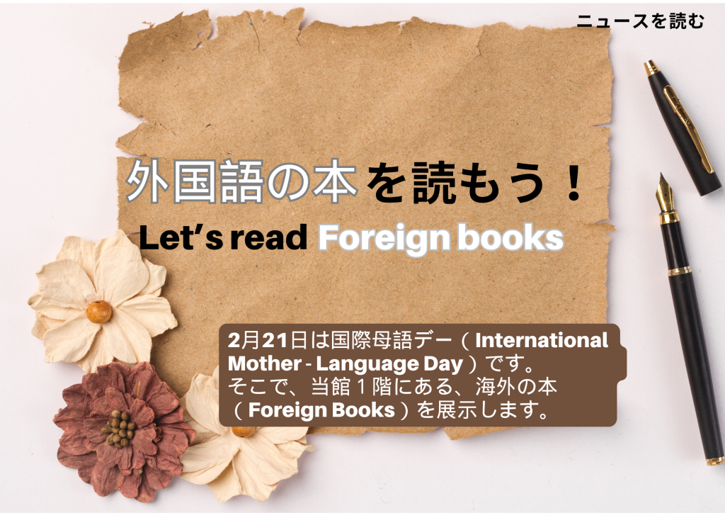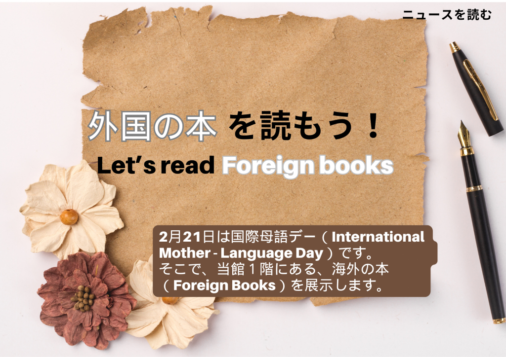 そこで、今回ニュースを読むでは、外国語で書かれた本(Foreign Books)の展示をします。