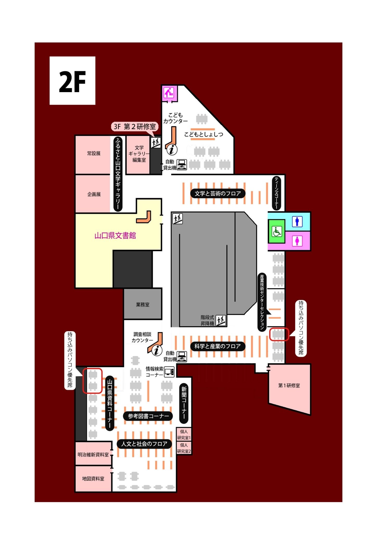 - 哲学、歴史、法律、経済関係の図書と雑誌が置いてあります。また、山口県に関する資料、山口県出身者の著作、山口県内で出版された資料を備えた山口県資料コーナー、百科事典、辞書、調べるための専門書などが並んでいる参考図書コーナー、当日の新聞や新聞縮刷版を見ることができる新聞コーナーが同じフロアにあります。インターネットコーナーでは、インターネットをご利用いただけます。